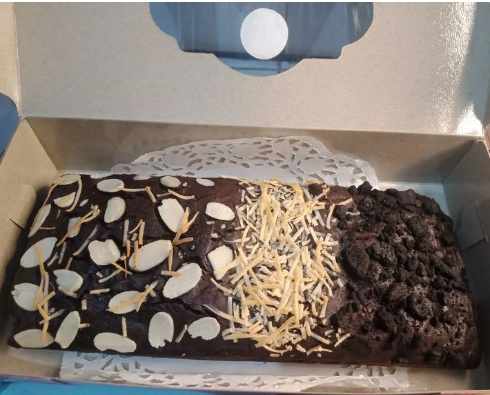 Fudgy Brownies Topping Kacang Almond&Keju Size 24x7cm