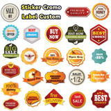 Sticker Cromo Ciri-cirinya bisa dilihat dari tampilan yang mengkilat dan licin (glossy). Stiker chromo ini banyak dipakai oleh pelaku usaha karena harganya yang lebih ekonomis. Sehingga cocok untuk stiker label makanan kering atau label toples makanan. Sayangnya, stiker cromo ini kurang tahan air dan minyak, serta bahan kertas yang mudah sobek dan tergores. * Harga yang tercantum adalah harga 1 lembar, pilihan ukuran dan isi yang di dapatkan 1 lembarnya bulat / kotak 3 cm per lembar isi 108 pcs bulat / kotak 4 cm per lembar isi 70 pcs bulat / kotak 5 cm per lembar isi 40 pcs bulat / kotak 6 cm per lembar isi 28 pcs bulat / kotak 7 cm per lembar isi 24 pcs bulat / kotak 8 cm per lembar isi 15 pcs bulat / kotak 9 cm per lembar isi 12 pcs bulat / kotak 10 cm per lembar isi12 pcs Oval / Persegi 5X3 cm isi 70 Pcs Oval / Persegi 6X3 cm isi 54 Pcs Oval / Persegi 6X4 cm isi 40 Pcs. Oval / Persegi 6X5 cm isi 32 Pcs. Oval / Persegi 7x4 cm isi 40 Pcs Oval / Persegi 7x5 cm isi 35 Pcs Oval / Persegi 7x6 cm isi 30 Pcs Oval / Persegi 8x4 cm isi 35 Pcs Oval / Persegi 8x5 cm isi 25 Pcs Oval / Persegi 9x5 cm isi 25 Pcs Oval / Persegi 9x6 cm isi 22 Pcs berbahan kuat. Biasanya digunakan untuk label produk kemasan _(botol, snack, toples, plastik, mika, kaleng, dll)_