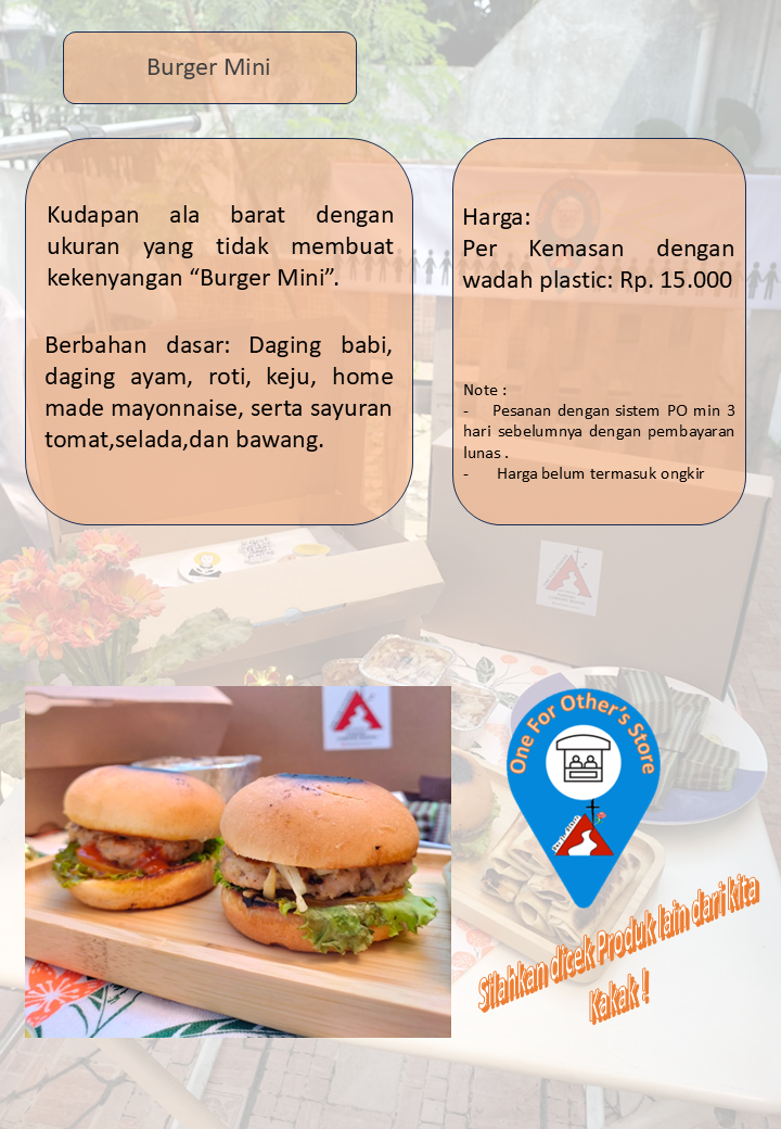 Kudapan ala barat dengan ukuran yang tidak membuat kekenyangan “Burger Mini”.