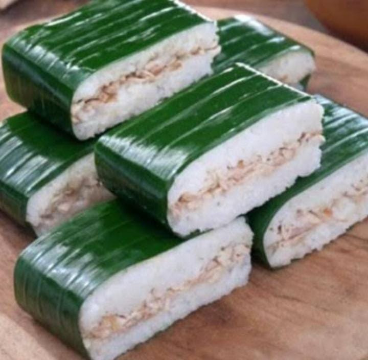 snack ketan gurih berisi ayam suwir lalu dibungkus dengan daun pisang. Harga satuan @5.000