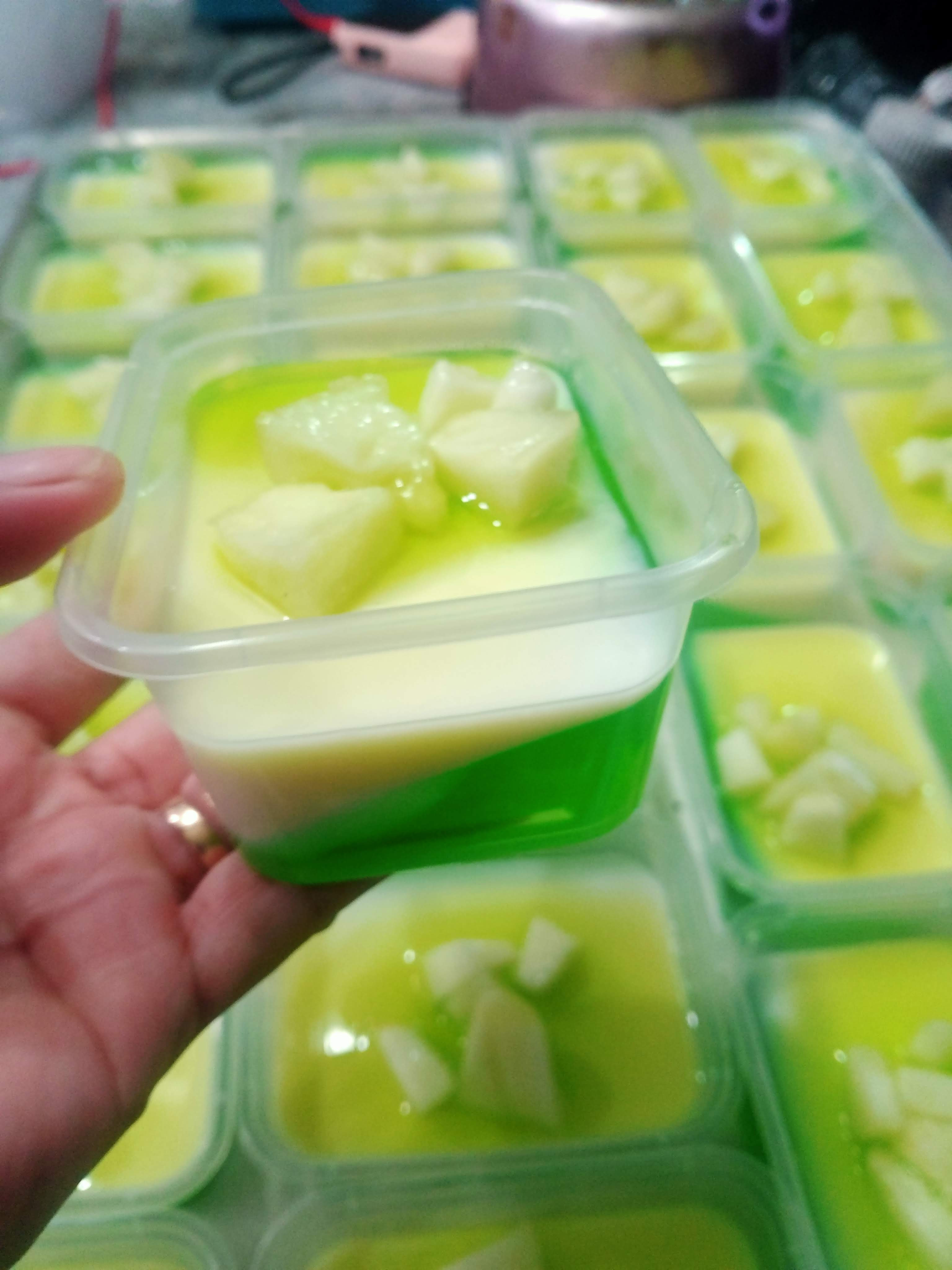 Dessert Puding jelly melon + pusing susu yg lembut topping melon Ukuran 350ml
