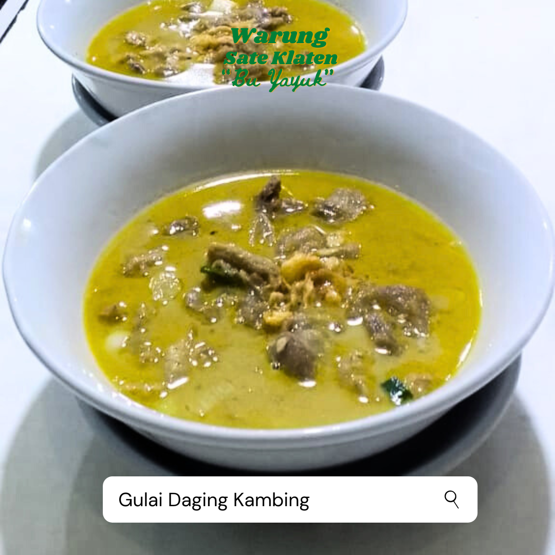 Daging Kambing dimasak dengan kuah gulai tanpa sayuran dengan cita rasa khas Klaten