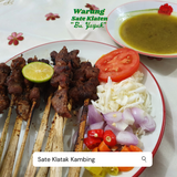 Sate daging kambing dibakar dengan bumbu klatak racikan khas Klaten disajikan dengan kuah gulai
