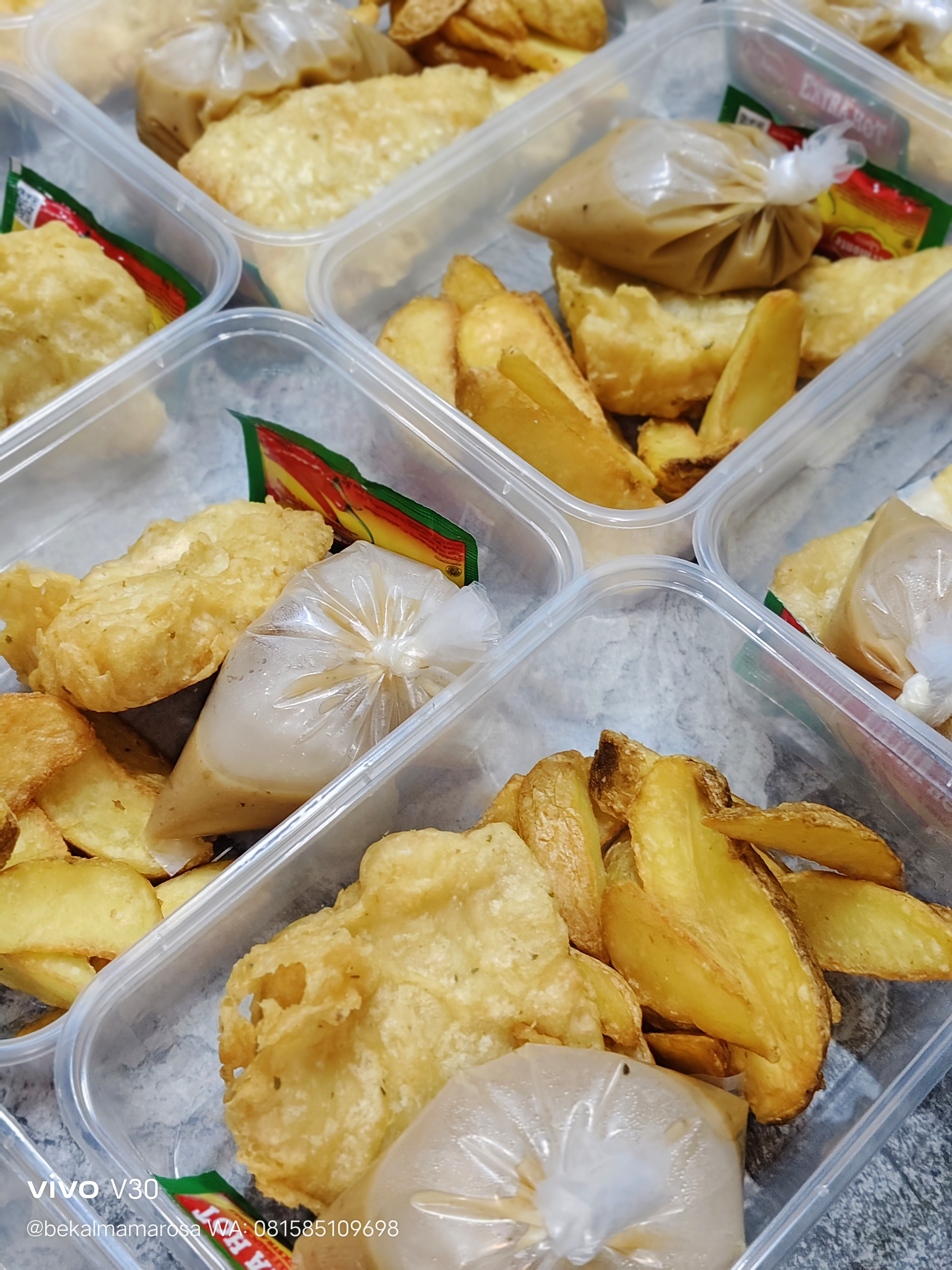 Ikan dori goreng tepung Krispy dilengkapi dengan cocolan saus jamur dan potato wedges